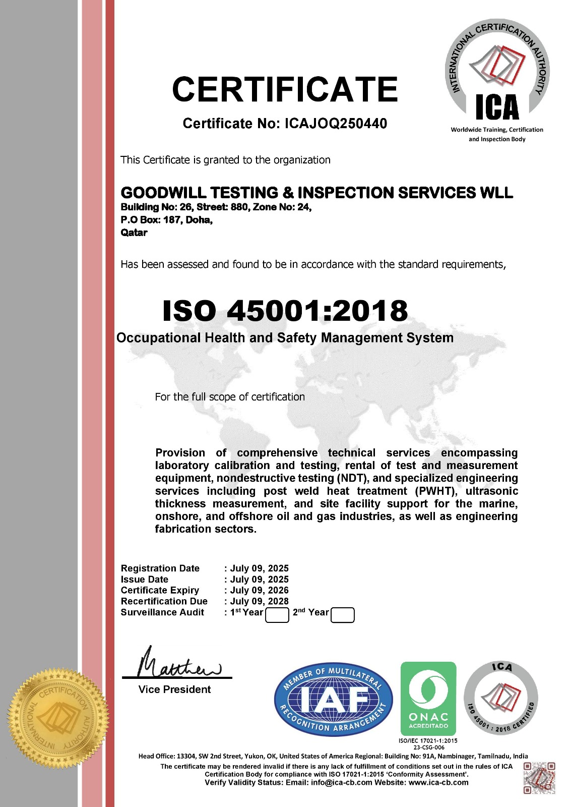 Goodwill Testing and Inspection WLL was established in Qatar to meet the growing demand for dependable, high-quality calibration and NDT services in the region. With a team of skilled local professionals, we offer services that adhere to international standards, meet industry expectations, and support operational excellence. Our commitment to quality, precision, and compliance ensures that we remain a trusted partner for clients across critical sectors, including Oil & Gas, Manufacturing, Power, and Construction. From high-accuracy calibration to critical NDT inspections, Goodwill Testing and Inspection WLL ensures your operations run with confidence and compliance—no matter where you're located.
